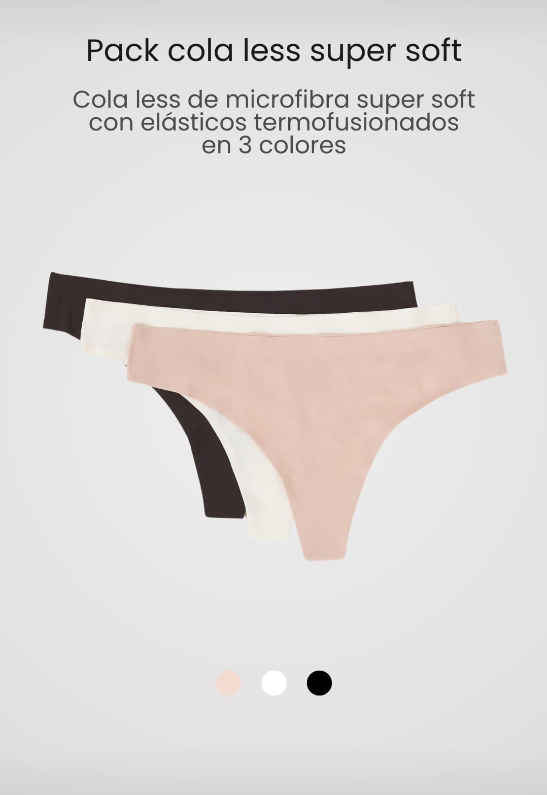 PACK x 3 colaless de microfibra supersoft con elásticos termofusionados. Brinda un calce perfecto y efecto segunda piel. Combínalo con corpiño o el top super soft